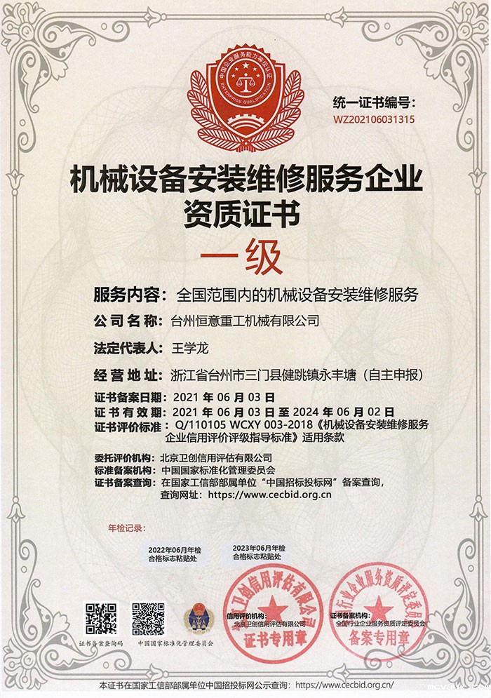机械设备安装1级资质